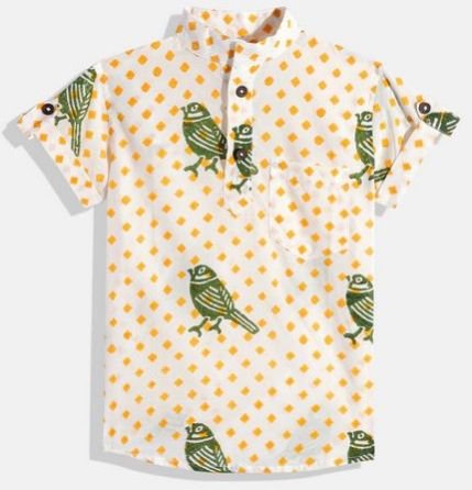 Boys Organic Cotton Bird Block Printed Shirts