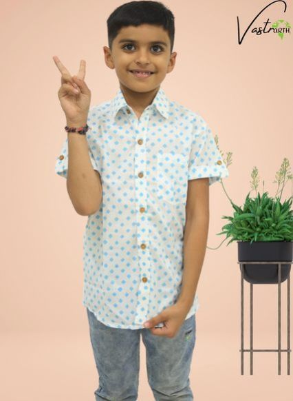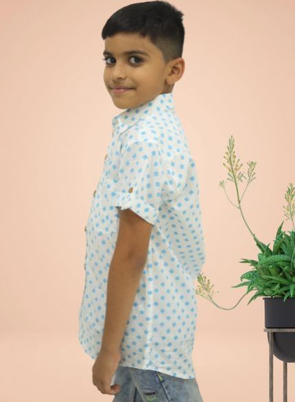 Boys Organic Cotton Blue Dot Shirts