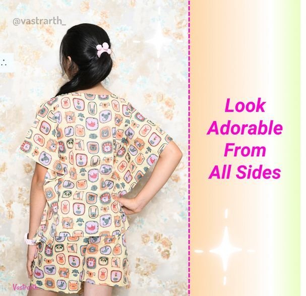 Get your little one ready for fun-filled days with the VATRARTH Girls' Cotton Printed Top and Shorts Set. Featuring a whimsical print of playful icons, this two-piece outfit is perfect for casual outings, playdates, and everyday adventures. Made from soft and breathable cotton, this set ensures maximum comfort while keeping your child stylish and happy.